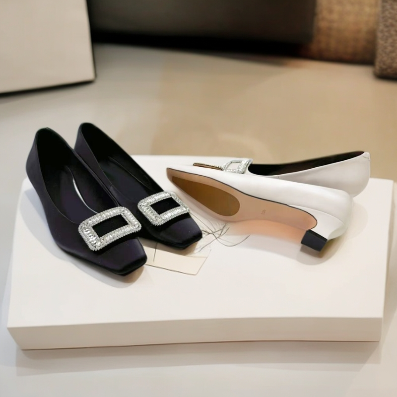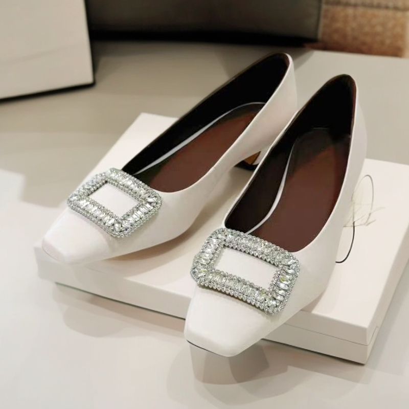 Elizabeth French Chic Crystal Square Buckle - Versatile Fashion Pumps